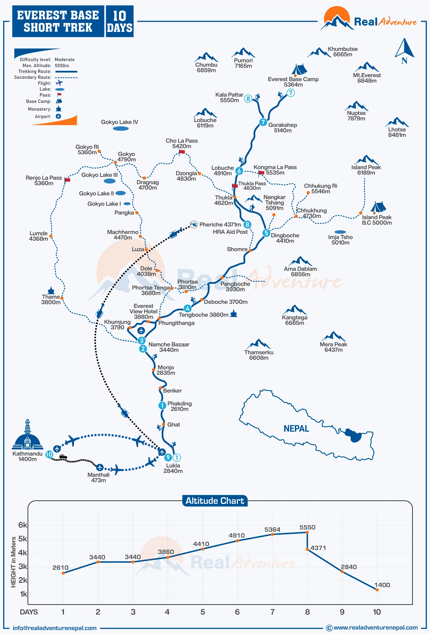 - Guided Route with Trek Map: Follow the scenic trails in the EBC Trek map for an unforgettable adventure.